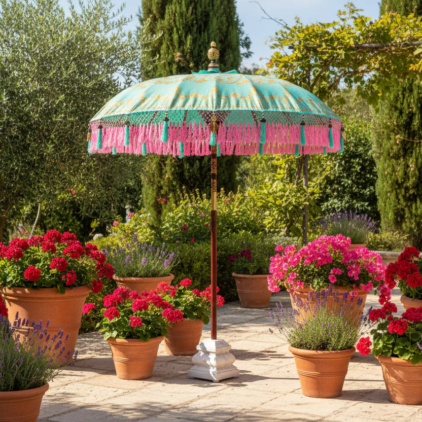 Bali Sun Parasol - Large Mint with Green or Pink Tassels